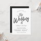 Una invitación de boda única con estilo de letra de baile seguido de los detalles únicos de su boda en negro y blanco.