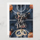 Puntee con sus invitados enviando esta tarjeta de invitación con el tema de baloncesto "Save the Date". Perfecto para las parejas amantes del deporte, cuenta con vibrantes diseños inspirados en la corte y textos lúdicos para anunciar su día especial. Para quién: Parejas que aman el baloncesto, los aficionados al deporte, entrenadores y bodas invitados que disfrutan de un tema único y divertido.