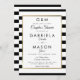 Con un fondo clásico de rayas negras y blancas, esta elegante invitación a la ducha de parejas de novios tiene un falso borde de Relieve metalizado dorado que enmarca los detalles de la ducha de las parejas en una moderna tipografía de moda. Diseñado por Thisisnotme©