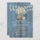 Flores de aliento de bebe vintage Mason Jar y Velas Rústicas Dusty Blue Barn Wedding Invitaciones.