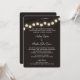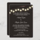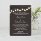La cadena de lámparas de estilo industrial vintage decoran esta caprichosa invitación a la boda con un fondo marrón oscuro o eligen un color de fondo diferente como prefiera.