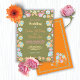 Coloridas invitaciones de bodas de bordado de mod. Flores de bordado dibujadas a mano en tonos pastel bonito con fondo verde y el fondo es naranja con líneas de acurrucarse. Un gran ambiente de arte folclórico y perfecto para una pareja boho, moderna, atrevida, fiesta, jardín o artista. Ilustracion dibujado a mano por McBooboos. Toda la redacción puede cambiarse para adaptarla a sus necesidades. Para realizar más cambios, vaya a Personalizar esta plantilla. En la parte inferior verás "¿Quieres personalizar este diseño aún más? Haga clic en la herramienta EDIT using Design. A partir de ahí puede cambiar algunas fuentes y algunos colores, mover cosas o borrar lo que necesita.