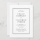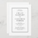 Minimalista invitación clásica a la boda que presenta dos bordes cuadrados usando tipografía serif y monograma en la parte posterior.