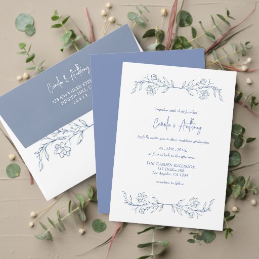 Blue Floral Boho Side Border WeddingDiseñado por Dia Sha