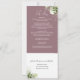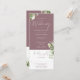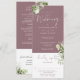 Una invitación de boda malva todo en uno con hojas de vegetación botánica rústica y tipografía elegante. La invitación incluye una tarjeta de RSVP que se puede cortar y detalles de información para los invitados. Diseñado por Thisisnotme©