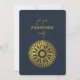 Un destino azul marino diseño de pasaporte de boda con compás de oro y elementos de viaje. Este diseño es ideal para todas las bodas de primavera, verano, otoño e invierno. Un elegante diseño de viajes azul marino y boda dorado con distribución de pasaportes, mapa del mundo y foto de pareja personalizado. Un moderno diseño de invitación a la boda de destino con elementos elegantes. También están disponibles artículos de papelería para bodas y otros formatos de invitación para bodas.