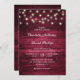 Invitación Boda de Burgundy Rustic Wood String Lights