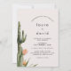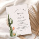 Invitación a la boda de Cactus floral, Naranja moderno, invitación a la boda con temática de cactus de estilo moderno con un cactus floral naranja pálido sobre un polvoriento fondo rosa gris.