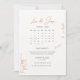 La invitación a la boda del calendario minimalista en blanco y beige desprende un encanto elegante y sobrio, lo que crea el tono para una celebración sofisticada. La invitación tiene un fondo blanco inmaculado, que simboliza la pureza y nuevos comienzos. El beige aporta calidez y suavidad al diseño.