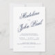 Invitación Boda de caligrafía azul de la marina contemporánea