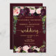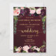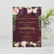 Rubor rosa y borgoña; un espléndido nombramiento floral de flores profundas de arándano rojo burdeos con valiosas peonías rosadas pálidas aglutinadas contra un suntuoso y rico fondo de color burdeos oscuro de color burdeos con caligrafía de boda bañada en oro con un diseño formal. Esta invitación se puede personalizar en cualquier ocasión.