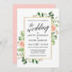 Guión moderno de caligrafía, elegante color de agua Eucalipto verde rosas rosas rosadas Invitación a la boda del marco dorado - Rubor rosa de vuelta