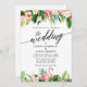 Guión moderno de caligrafía, acuarela tropical floral Invitación a casar con flamenco rosa.