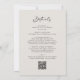 Todo en un moderno y moderno guión de caligrafía negra elegante Invitación a la boda de la concha de huevos... Nuestra moderna invitación a la boda "frontal y posterior" negra en concha de huevo incluye un guión moderno de caligrafía de moda combinado con texto en serif y sans serif para una simple invitación a la boda clásica. La parte posterior de la invitación contiene todos los detalles que normalmente se verán en las tarjetas separadas del paquete boda. Esta invitación a la boda de estilo moderno ha sido diseñada para ser a la vez moderna y de bajo coste. En la parte posterior también hay una plantilla de gráfico de código QR que puede reemplazar escribiendo en la dirección URL de su sitio web boda (o eliminando si no planea usar una... TAMBIÉN - no olvide borrar el texto que hace referencia a la información del código QR). Todo el texto de ejemplo (aparte de los elementos caligráficos gráficos) se puede revisar fácilmente con su propia información sobre la plantilla de personalización.