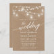 Moderna y elegante caligrafía guión Boda Kraft Invitación con luces de cadena Mason Jar
