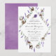 Tendencias de invitaciones de boda de otoño/invierno con lavanda pintada a mano y algodón con fondo de lavado de aquarela púrpura.