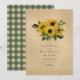 Invitación de ducha de parejas de otoño - otoño rústico granero campo con girasoles y un gráfico de mantel a cuadros verde en el reverso.