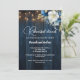 Cena elegante para el ensayo de bodas Invitación con caligrafía elegante completada por una maravillosa madera azul, luces de cuerda de jardín y floral azul blanco con purpurina dorado que se puede personalizar fácilmente con los detalles de la cena antes de la boda. Con esta tarjeta personalizada, estás un paso más cerca de transformar tu celebración en un acontecimiento notable.
