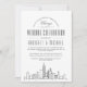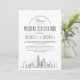 ¡Da una impresión y excita a tus futuros bodas invitados que viajarán de lejos y de lejos para tu ceremonia de boda! Esta divertida y formal invitación pone de relieve el maravilloso destino de la ciudad de Chicago, Illinois. Cuenta con un moderno ilustracion de estilo deco con un perfil de la ciudad que descansa en el fondo. Centrados encima de esto están los nombres de la pareja boda y la información del día de la boda en un texto de estilo abierto. Los elementos de texto están enmarcados por un borde de línea cuadrada que lo rodea. Todo ello en conjunto, con un tema de color blanco y negro neutro y clásico. Al revés de la invitación hay una opción para una foto de la pareja, o una foto de la ciudad anfitriona. La imagen también se puede eliminar para mostrar en su lugar un fondo gris de carbón vegetal profundo, para complementar el aspecto y la sensación del frente. Esta invitación es una manera alegre y elegante de presentar su evento boda a sus futuros invitados.
