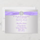 Elegante cinta púrpura de lavanda con centro de joya de diamante sobre un encaje plateado y fondo púrpura 5x7 invitación de boda. Personalice con su elección de estilo de fuente y color de fuente. Elimine el texto frontal para una apariencia más formal.