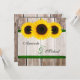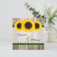 Una elegante invitación a la boda de girasol. Presenta madera rústica de granero con cintas de imitación verdes y girasoles amarillos. Perfecto para una boda de campo, boda de girasol, boda de granero y más!Los diseños son ilustraciones/gráficos impresos - NO RIBBON REAL.