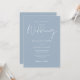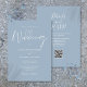 Esta elegante invitación a la boda azul polvorienta de guión se puede personalizar con su información en tipografía de moda con los detalles de su sitio web boda y su código QR al revés. Diseñado por Thisisnotme©