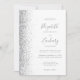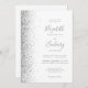 El lado izquierdo de esta elegante y moderna invitación a la boda tiene un diseño purpurina de imitación plateado. El texto del personalizable combina la escritura a mano gris, la copperplate y las fuentes cursivas en un fondo blanco. El reverso proporciona espacio para los detalles del boda sobre un fondo blanco sólido, junto con un código QR que los huéspedes pueden explorar para visitar su sitio web y RSVP, lo que ahorra el coste de imprimir y enviar por correo tarjetas RSVP separadas.