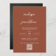 Terracota rústica con escritura moderna lisa, foto e invitación de boda en monograma en el código QR RSVP y detalles del boda. Puede personalizar todo el texto y otros detalles.