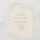 Elegante invitación de bodas con arco que incluye delicados dibujos de oro floral sobre un fondo de marfil con un código QR en la parte trasera para RSVP y acceso al sitio web. Romántico y moderno con un toque vintage, perfecto para las celebraciones atemporales y formales de los bodas.