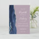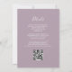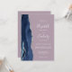 El borde izquierdo de esta elegante y moderna invitación a la boda incluye una barra acuática azul marino bordeada por un falso purpurina plateado. El texto del personalizable combina escritura a mano, copperplate y tipografías cursivas en blanco sobre un fondo malva morado. El reverso proporciona espacio para los detalles del boda sobre un fondo sólido de malla, junto con un código QR que los huéspedes pueden explorar para visitar su sitio web y RSVP, lo que ahorra el coste de imprimir y enviar tarjetas RSVP separadas.