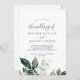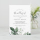 Esta invitación a una boda en código QR de esmeralda es perfecta para un boda boho. El diseño es elegante y rústico, con unas hojas de acuarela verde oscuro y un eucalipto con un toque bohemio moderno. Guarde el papel incluyendo un código QR para que su invitado vea detalles, RSVP o ambos.