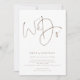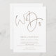 Guión marrón moderno Hacemos Invitación Simple A La Boda. Disponible digitalmente e impreso. Un diseño sobrio y elegante, con una escritura marrón claro sobre el blanco. Guión de conjunto con estilo Nosotros hacemos toma el escenario central en la parte superior.El resto del texto que puede personalizar fácilmente. Los colores del texto y del fondo pueden cambiarse si desea adaptarse mejor a su tema boda a través de la opción personalizar. Hay un código QR en la parte trasera para que los huéspedes puedan responder en línea a través de su sitio web. El código QR se generará automáticamente para reemplazar el código de ejemplo cuando introduzca la dirección URL de su sitio web en la plantilla.