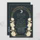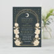 Disfrute de la elegancia atemporal con esta invitación de inspiración Art Nouveau. Con un arco dorado radiante, delicadas flores blancas y brillantes estrellas en un rico fondo azul, este diseño marca la pauta para una celebración sofisticada. ¡Ideal para bodas, galas y eventos históricos! Tenga en cuenta que el oro de este producto NO es un Relieve metalizado real; se imprime sin formato.