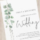 Boda de código QR de Eucalyptus moderno. Estilo botánico minimalista, con un guión manuscrito para Boda y el resto del texto que puede personalizar fácilmente. Una elegante rama de las hojas de eucalipto acuarela corre por el lado izquierdo.