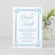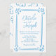 Esta invitación a la boda es perfecta para su boda si está buscando una invitación única y fácil de editar. Una elegante y sencilla invitación minimalista de bodas mediterráneos de italia, de color blanco y azul dibujada a mano. El fondo es blanco claro en la parte delantera y el marco azul floral dibujado a mano. Y la mano azul escribió los nombres de novia y novio. Y en la parte trasera tienes un patrón floral dibujado a mano y código QR de personalizable para que tus invitaciones puedan RSVP en línea. Y información editable Asequible y también es invitación electrónica digital si quieres enviarla por texto o correo electrónico. Toda la información es personalizable haciendo clic en el botón de personalización. Así que agárralo y hazlo tuyo para que invites comprometidos y emocionados.