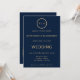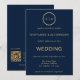 Invitación de boda de monograma dorado azul marino elegante. Un diseño tipográfico minimalista totalmente personalizable. El color y el tipo de letra se pueden cambiar a través del menú de edición. También puede cambiar los colores del texto y del fondo en ambos lados si lo desea. Agregue su código QR a su sitio web de bodas en la parte posterior como una opción conveniente para que sus invitados respondan. Simplemente cambie la url de muestra a la suya y su código se generará automáticamente.