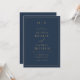 Invite a sus huéspedes con esta invitación a una boda en código QR. Con un fondo marino profundo, una elegante tipografía de guiones dorados y un práctico todo en un solo formato, este moderno diseño combina la sofisticación del tono de joyas de siempre con la comodidad práctica. El código QR integrado permite a los clientes acceder al RSVP instantáneamente y al sitio web de su boda para obtener más detalles. Perfecto para bodas nocturnos, celebraciones con corbata negra o parejas que aman la elegante papelería.