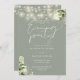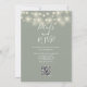 Este elegante sage verde vegetación botánica floral luces de cuerda boda invitación de fiesta nocturna con luces de cuerda de bonito y vegetación floral, puede ser personalizado con su información en tipografía de moda con los detalles de su sitio web boda y su código QR al revés. Diseñado por Thisisnotme©