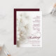 Esta hermosa invitación a la boda presenta un diseño magnífico con una pizca de orquídeas blancas de ensueño. El texto de color burdeos justificado a la derecha presenta un guión de caligrafía lujosa con una larga cola rizada que lo hace moderno y clásico. Elegante, sofisticada y moda para invitar a sus amigos y familiares a compartir en su día especial. La parte posterior de la tarjeta tiene un código QR para su sitio web boda y una breve nota que instruye a la gente a visitar el sitio para obtener detalles y RSVP.