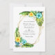 Exótica invitación a bodas floridas en la playa turquesa y amarilla de verano, con abundante vegetación tropical en un personalizable geométrico dorado a los detalles de tu evento. Ideal para cualquier tema o boda en el jardín. El código QR al revés se dirige al sitio de su boda, donde la gente puede aprender más y ver más.