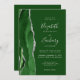 El borde izquierdo de esta elegante y moderna invitación a la boda incluye una pasarela de acuarela verde cazador bordeada por un falso purpurina de plata. El texto del personalizable combina escritura a mano, copperplate y cursiva en gris plateado sobre un fondo verde cazador. El reverso proporciona espacio para los detalles del boda sobre un fondo verde sólido, junto con un código QR que los huéspedes pueden explorar para visitar su sitio web y RSVP, lo que ahorra el coste de imprimir y enviar por correo tarjetas RSVP separadas.