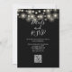Esta elegante invitación a la boda en blanco y negro, con luces de cuerdas de bonito y vegetación floral, puede ser personalizada con su información en la tipografía de moda con los detalles de su sitio web boda y su código QR al revés. Diseñado por Thisisnotme©