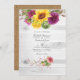 Rústico boho girasoles y dahlias invitación a la boda en tonos de burdeos y colores solares. Ideal para cualquier tema o boda en el jardín. El código QR al revés se dirige al sitio de su boda, donde la gente puede aprender más y ver más.