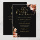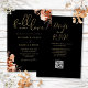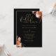 Esta elegante invitación a la boda puede ser personalizada con su información en tipografía de oro de moda con los detalles de su sitio web boda y su código QR al revés en un fondo negro. Diseñado por Thisisnotme©