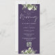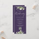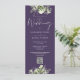 Invitación a una boda floral con vegetación que incluye tipografía de escritura caligráfica elegante y tu sitio web boda código QR en un fondo morado. Diseñado por Thisisnotme©