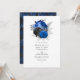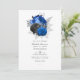 Invitaciones a bodas florales de acuarela vintage rústicas en acentos de azul real, negro y plata diseñados para ser rápida y fácilmente adaptados a las especificaciones de tu evento. Ideal para cualquier tema o boda en el jardín. El código QR al revés se dirige al sitio de su boda, donde la gente puede aprender más y ver más.
