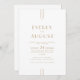 Esta invitación de matrimonio de doble cara de la Everly Collection presenta un diseño blanco minimalista con líneas de decoración de arte delgadas y cálido tipo oro. El diseño centrado y el espaciado generoso proporcionan un aspecto moderno y refinado. Guarde el papel incluyendo un código QR para que su invitado vea detalles, RSVP o ambos.