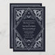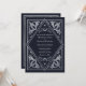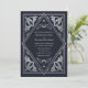 Establezca el escenario para un evento elegante con esta invitación todo en uno. Esta invitación a una boda inspirada en el tarot presenta un marco Art Nouveau de plata contra un fondo negro, perfecto para una historia de amor llena de magia. La parte posterior incluye los detalles del boda y un código QR personalizado. Tenga en cuenta que la plata de esta invitación NO es un Relieve metalizado real y está impresa en colores planos.