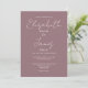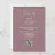 Esta invitación de boda con letra elegante minimalista malva se puede personalizar con su información en tipografía chic con los detalles de su sitio web de boda y su código QR en el reverso. Diseñado por Thisisnotme©