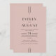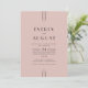 Esta invitación de matrimonio de doble cara de la Everly Collection presenta un diseño rosa y lujoso con detalles de estilo Art Deco refinados y una elegante tipografía negra. Es perfecto para bodas de moda, de inspiración vintage. Guarde el papel incluyendo un código QR para que su invitado vea detalles, RSVP o ambos.